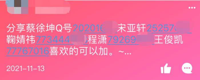 前几天,古道心肠的院办表妹便为我从互联网搜罗了几个顶流的QQ号。她发消息叮嘱我:“喏,这是lh的号,千万别往外传。”
