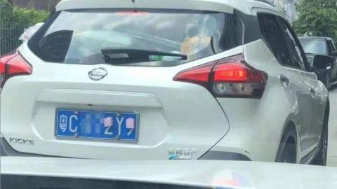 2019年8月9日中午,一辆粤C××2Y9号白色日产小车在人民西路行驶,由于号牌上贴了两个正方形泡沫,被网友举报。▼