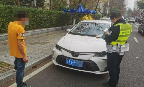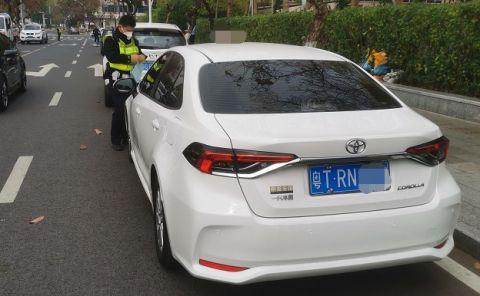 驶出停车场后,莫某一般都会把铁牌撕下来,但当天莫某却忘记了。谁知当丰田小车开到洲山路时,被交警拦下了。▼