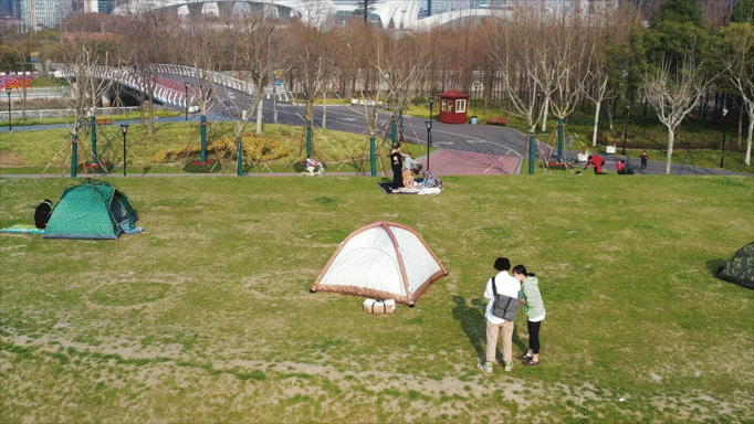 小编和我的同事拖拖有一天带着它出去露营,拖拖还专门带了无人机把帐篷的全景拍了下来,感觉它在一众帐篷里脱颖而出,显得格外好看呢!