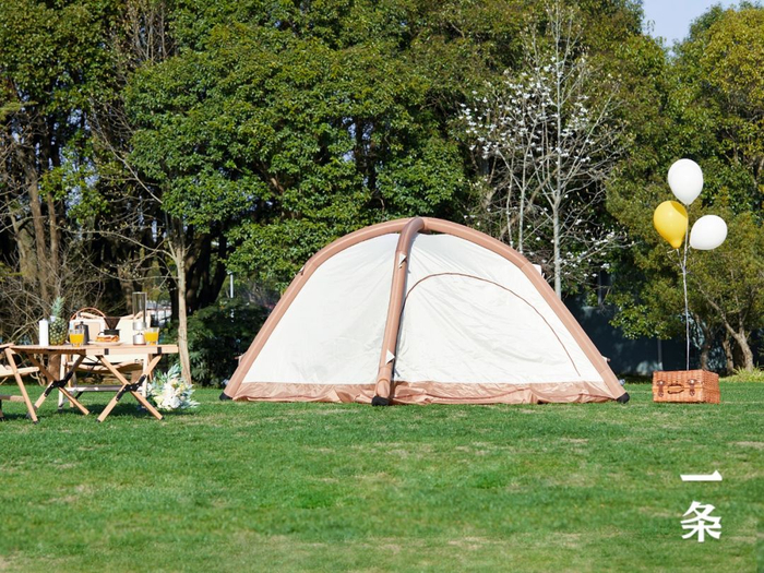 因为帐篷是充气使用的,少了金属支架,也大大减轻了它的重量,让你可以轻量化出行。
