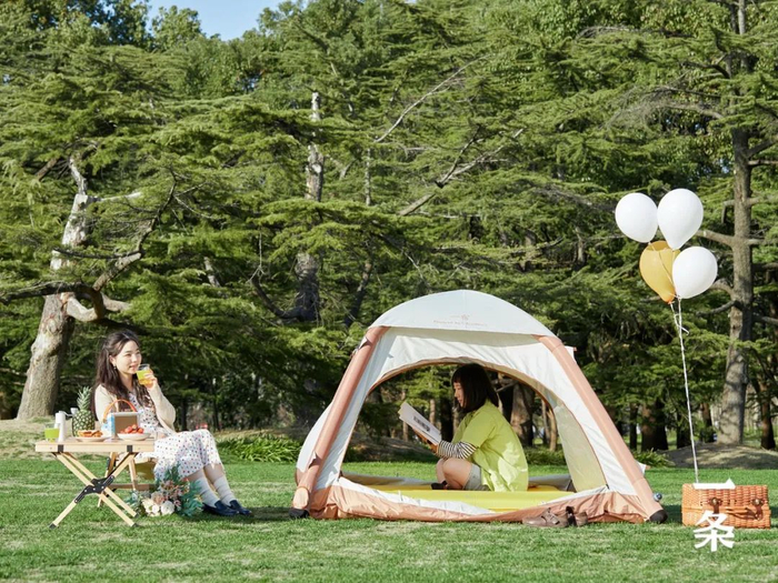 大部分人印象里的帐篷,可能都是配有繁复的金属支架,需要自己组装的,对动手能力是种考验,对于手残党来说非常不友好。