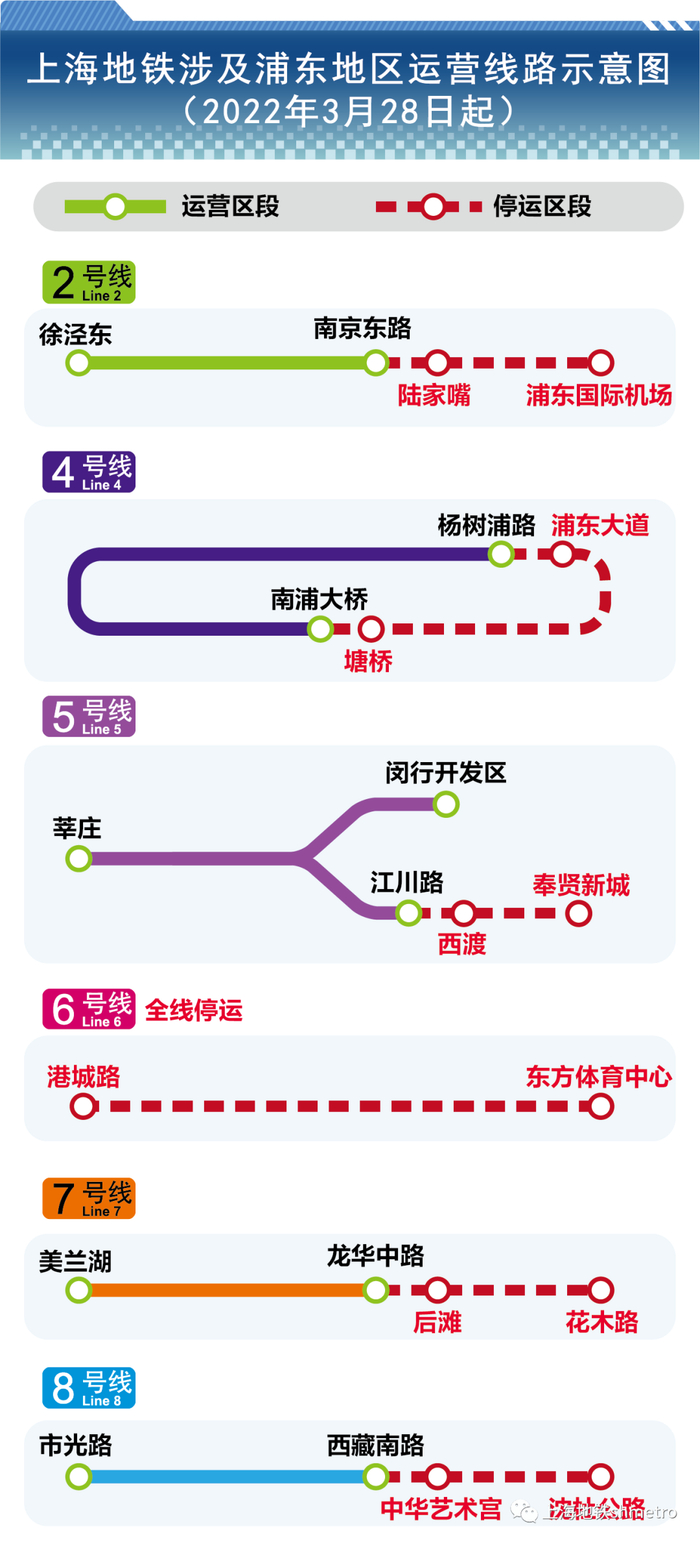 3月28日至31日黄浦江以东、以南区域的上海地铁所有车站暂停运营
