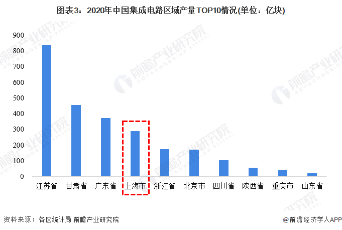 上海市集成电路产业的发展在全国处于领先地位。2020年,上海集成电路产业实现销售收入2071亿元,较2019年增长21.40%,占到了全国集成电路销售收入的近四分之一。2020年,上海市实现集成电路产量288.7亿块,在全国各大省市中排名第四。