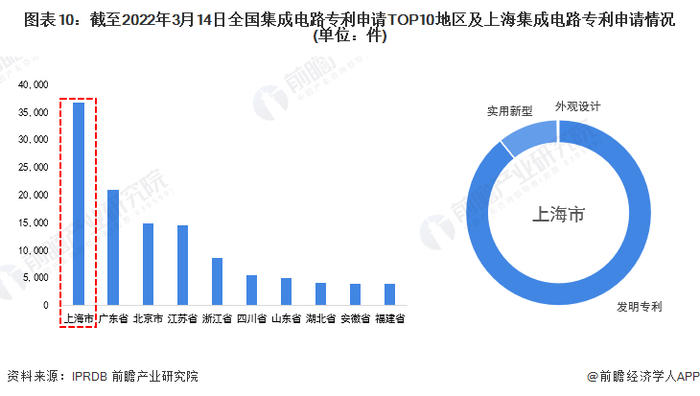 近年来,上海集成电路创新能力也进一步提升。从知识产权看,截至2022年3月14日,上海集成电路企业申请专利36746件,在全国各大省市中排行第一。这36746件专利中以发明专利居多,共有32767件,占到了专利总数的90%以上。