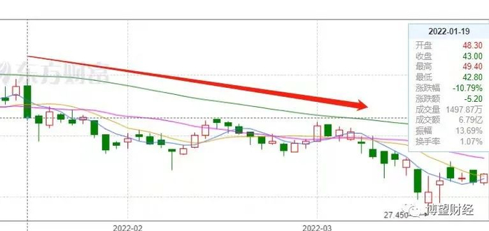 1月19日至今,泡泡玛特股价呈震荡下跌趋势