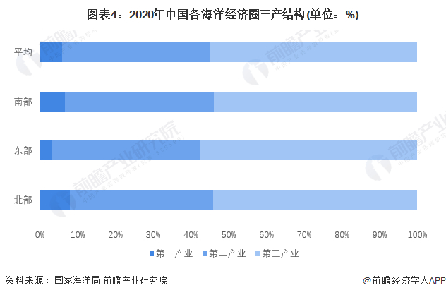 本文核心数据:中国各海洋经济圈生产总值、中国各海洋经济圈三产比重
