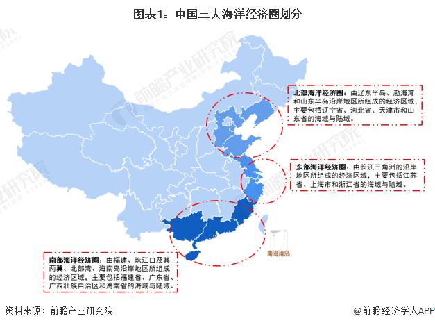 由于我国幅员辽阔,地跨温带、亚热带与热带,各地海域在水温、气候、动植物群等各个方面均有所不同。因此,在“十二五”时期,我国将沿海省份划分为三大海洋经济圈:北部海洋经济圈、东部海洋经济圈和南部海洋经济圈。各地各省市因地制宜,发展当地的海洋经济。