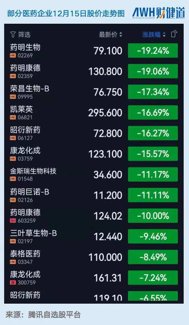 多家医药公司在资本市场应声倒地。截至收盘,药明生物跌近20%,药明康德跌超18%,康龙化成(300759.SZ)、荣昌生物(09995.HK)、金斯瑞(01548.HK)、腾盛博药(02137.HK)等此前备受关注的医药公司纷纷跳水,跌势之猛,让人怀疑人生。