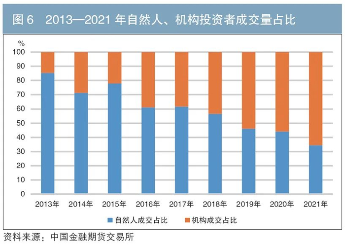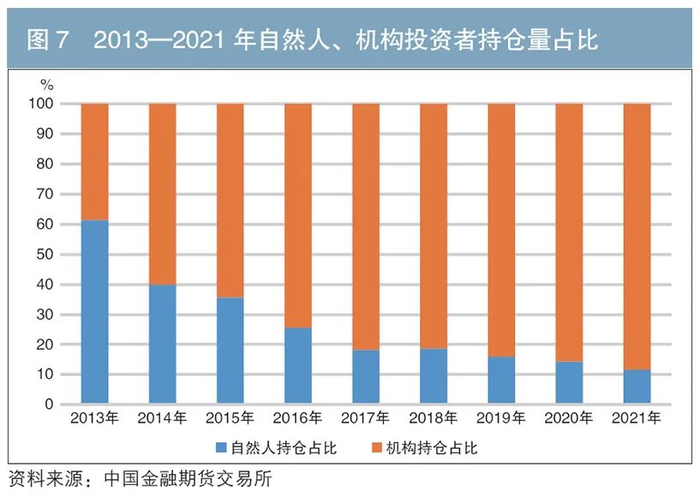 二是进一步优化投资者结构,推动中长期资金入市。从国际经验来看,商业银行、保险机构以及其他中长期资金均为国债期货市场的重要参与主体。自2020年以来,中长期资金参与我国国债期货市场步伐加快,五大国有商业银行获准以试点形式参与,7家保险资管公司成为首批入市保险机构,基本养老保险基金、企业年金/ 职业年金基金也正式参与。深化银行、保险机构参与国债期货市场,推动更多中长期资金参与,有助于提升其经营稳健性,还可以提高国债期货价格代表性,改善国债期货市场运行质量。