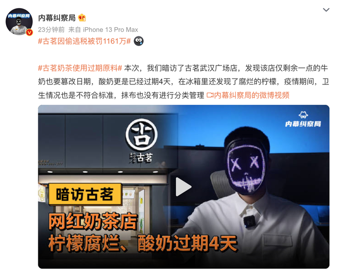 奶茶塌房!6000家门店的古茗逃税被罚千万,曾被曝用过期、腐烂食品