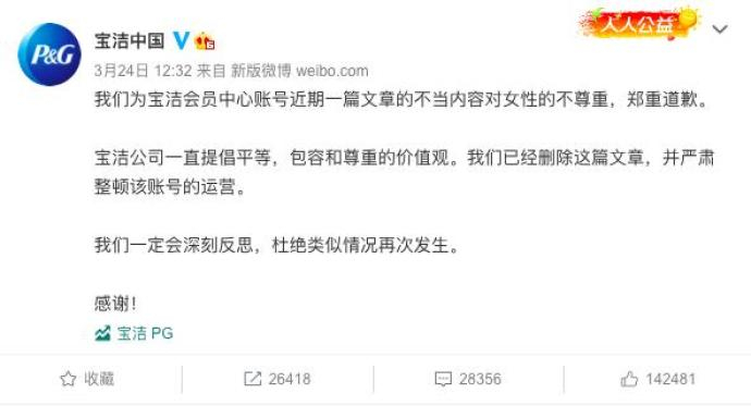 很快,该公司删除这篇文章,回应称将严肃整顿该账号的运营,对文章的不当内容以及对女性的不尊重表示郑重道歉。