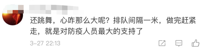 3月27日,@江宁婆婆 在微博发文,作为一线抗疫人员,我想说有些群众确实是发自肺腑的想来感谢一下工作人员,小朋友唱个歌跳个舞送个奶茶啥的都见过,但是,真的,感动是感动的,但是麻烦也是真的麻烦的。