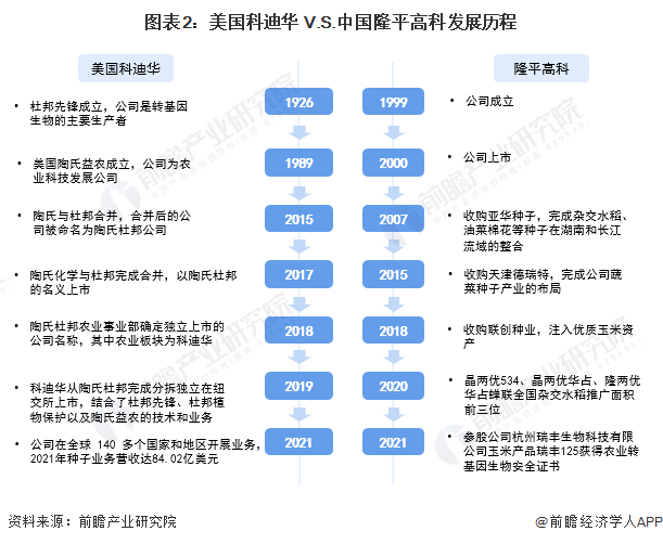 本文核心数据:科迪华和隆平高科发展历程、产品布局、财务数据、种子市场竞争格局