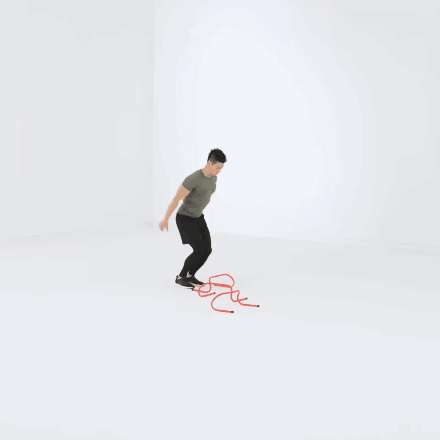 动作要领:交错摆放三个障碍架,尽量双脚并拢,跳过障碍架,每一次起跳落地后尽量不要有太长的休息时间紧接着跳下一个障碍架。