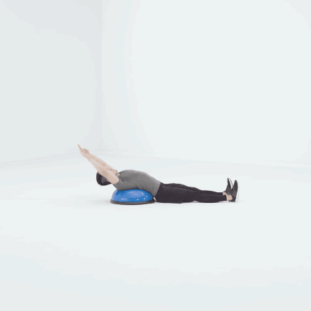动作要领:开始时平躺在半圆平衡球上(若没有平衡球则平躺于地面),背部和腰部与平衡球接触。然后双手伸直,依靠腹部的力量抬起左腿,用右手手掌接触左脚脚尖,然后重新回到起始的姿势,再依靠腹部力量抬起右腿,用左手手掌接触右脚脚尖。