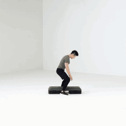 动作要领:找一个20cm到30cm的台阶或健身踏板(根据自己的能力选择高度),开始时下蹲用双手触碰踏板,上身保持正直,然后起身时跳上台阶。