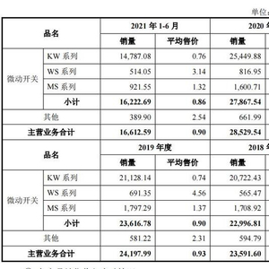 如招股书所示,2018年-2021年上半年,KW系列整体平均售价从0.77元/只降至0.76元/只,WS系列整体平均售价从5.07元/只降至3.14元/只,MS系列整体平均售价从1.34元/只降至1.32元/只。