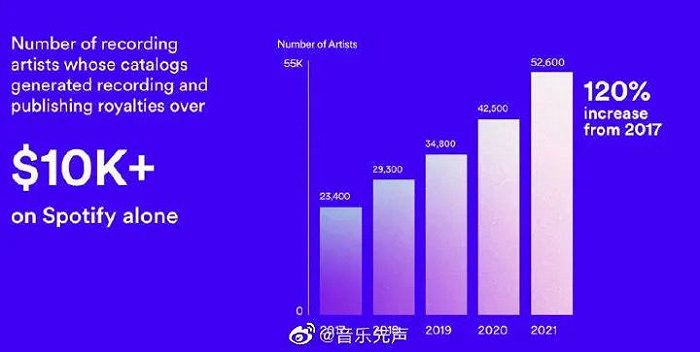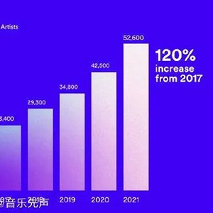 数据显示,2021年在Spotify上发行作品的音乐人共有800万,这么一对比,我们便不难发现这个比例甚至不足百分之一,在音乐流媒体上实现稳定创收的音乐人还是少得可怜。
