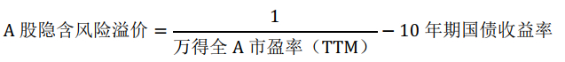 隐含风险溢价指权益投资相对于无风险国债的超额收益率。计算方法: