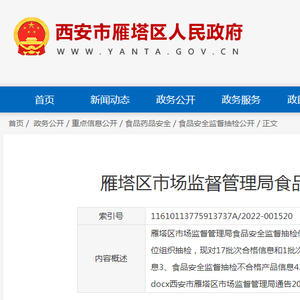 西安市雁塔区市场监管局公示1批次不合格食品(腐竹)信息