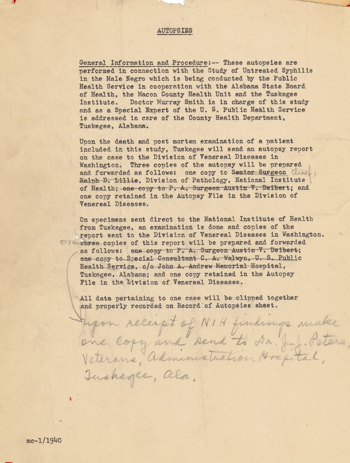 关于患者死亡后的尸体解剖结果是要发送给美国国立卫生研究院的,一场从上到下只有研究对象不知情的实验。图片来自@美国国家档案馆