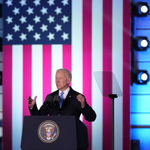 当地时间3月26日,波兰华沙,美国总统拜登就俄乌冲突发表演讲。(图源:人民视觉)