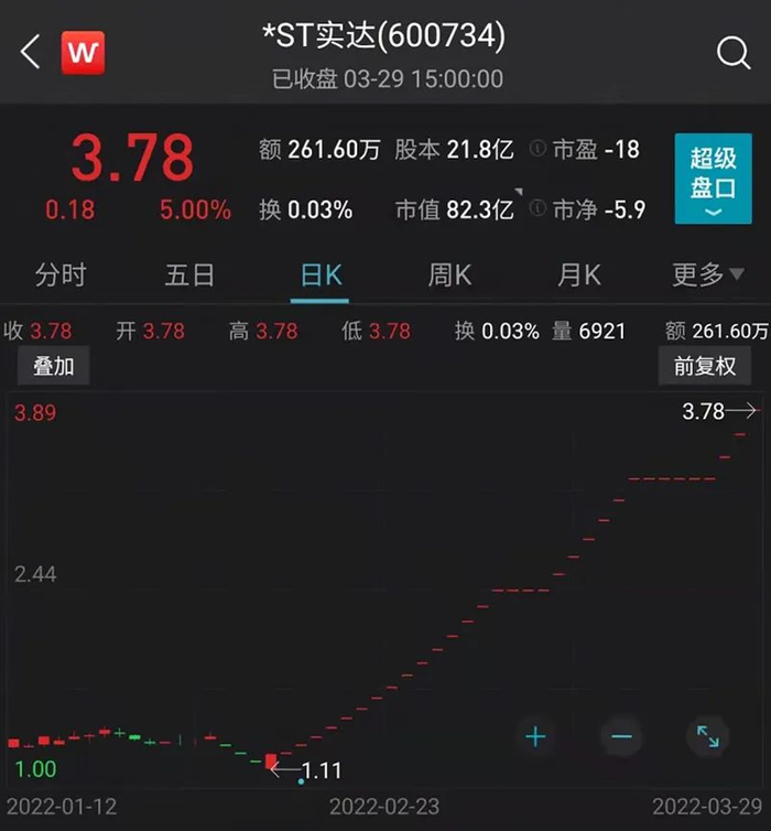 不可思议!一家*ST公司在如此低迷的市道里,竟然连拉24个涨停板,市值飙升至82.3亿元。究竟是什么资金在炒作*ST实达?