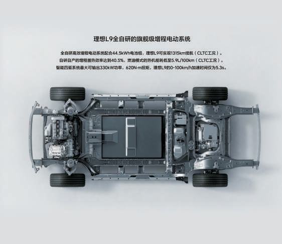 更长的续航里程,效率更高的增程器,更低的碳排放,是理想L9所具备的最主要特征。尽管理想L9尚未正式亮相,但从理想汽车目前发布的信息和李想透露的细节可以了解到,理想L9的电池组容量进一步提升至44.5千瓦时,在最新的CLTC(中国轻型汽车行驶工况)工况下,纯电续航里程将超过了200公里,达到215公里,综合最大续航里程可以达到1315公里;同时,增程器热效率提升至40.5%,这一数据已十分接近目前汽车行业的上限。