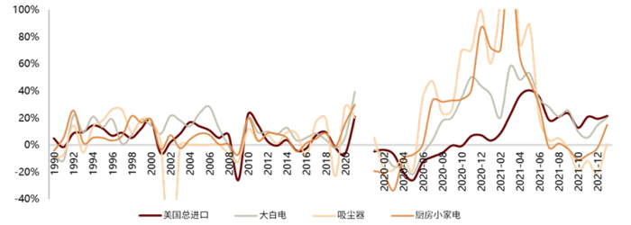 图表9:美国进口金额及部分家电品类进口金额同比增速