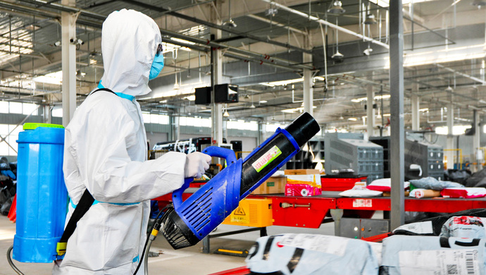 3月28日,消杀公司已经完成物流园区18.7万平方米建筑环境的消杀,三天一共用掉了2车消毒液。