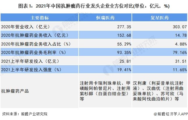 1、中国抗肿瘤药行业龙头企业全方位对比