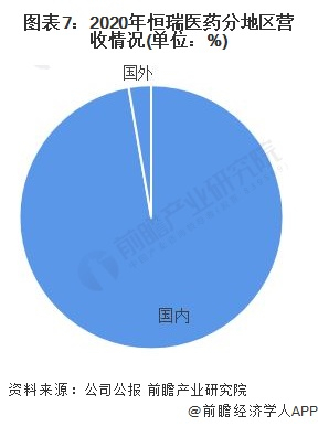 2020年,恒瑞医药销售区域主要集中在国内,国内实现销售收入268.55亿元,占比为97.26%。