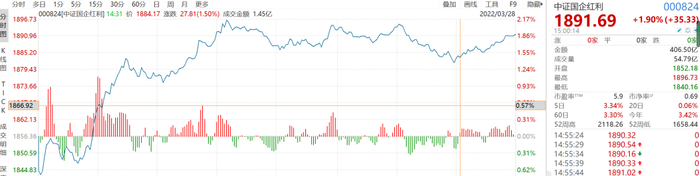 中证国企红利指数与红利低波指数基本囊括了沪深两市大部分高分红的公司。今天,这两个指数均收涨2%左右。