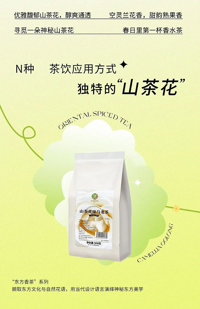 而速品推出的山茶花乌龙茶,选用的是山茶花风味和乌龙茶搭配,让茶感更有创新特点。