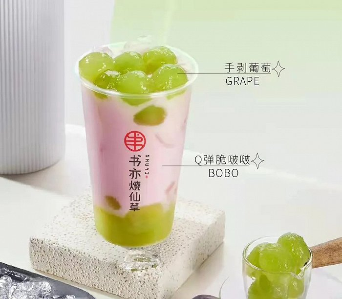 还有书亦小丑鸭系列做葡萄、草莓在奶茶中,将果和奶做结合,提供了新的口味选择。