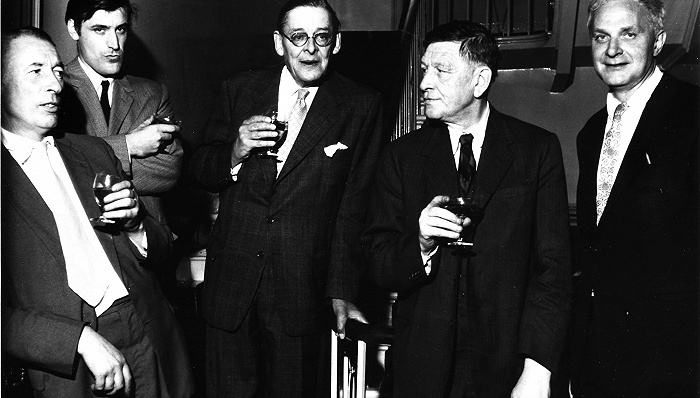 由左至右分别是路易斯·麦克尼斯、特德·休斯、T.S.艾略特、W.H.奥登和斯蒂芬·斯彭德。Mark Gerson摄影 中信出版社供图