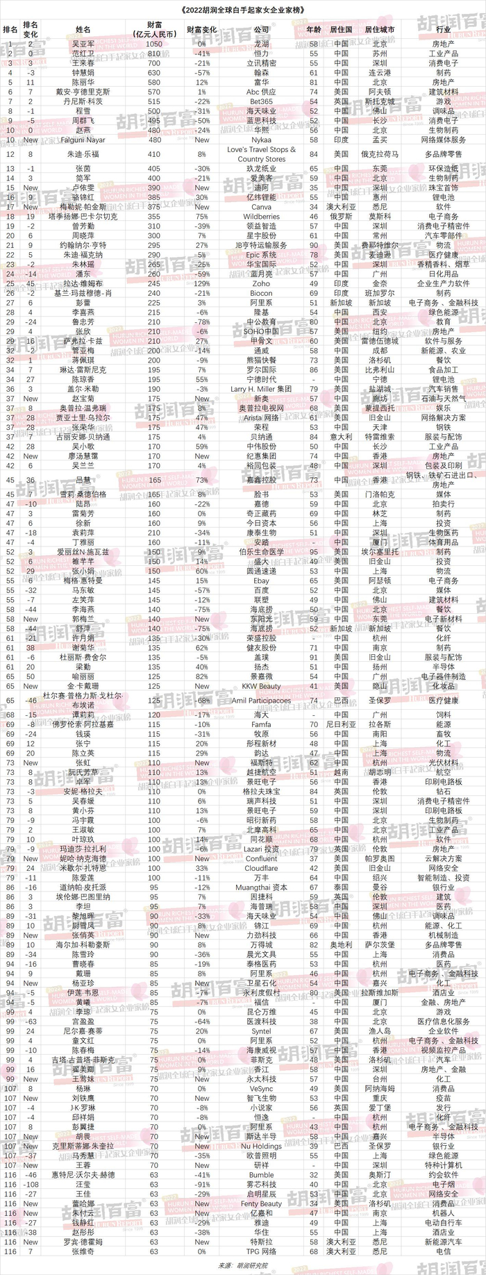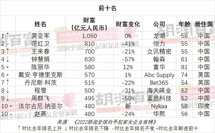 2022胡润全球白手起家女企业家榜发布 中国人包揽前三!