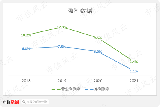 在这种情况下,员工成本和租金又大幅上涨,公司的营业利润率和净利润率分别降到3.4%、1.1%。