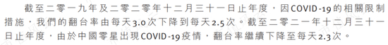 公司在解释2021年经营数据时表示,“由于中国零星出现COVID-19疫情”。言辞匮乏的背后体现了无奈。