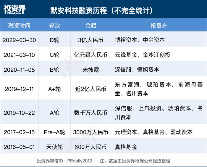 投资界(ID:pedaily2012)3月30日消息,杭州默安科技有限公司(以下简称「默安科技」)于今日正式宣布完成D轮融资。本轮融资金额为3亿元人民币,由博裕投资和中金资本旗下基金联合领投,航行资本提供独家财务顾问服务。