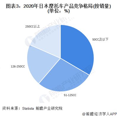 从产品竞争格局来看,在日本,小排量的摩托车更受市场欢迎,根据Statista数据显示,2020年日本摩托车销量随着其气缸容量大小的提升而下降,越小排量的摩托车越受日本市场欢迎,这主要与近年来全球环保政策不断落实,人们环保意识不断提高有关。