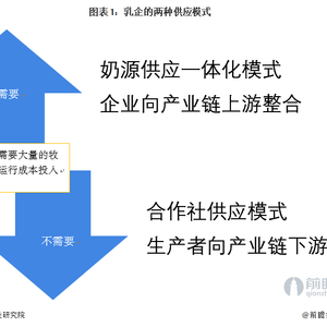 中国乳企存货管理模式要先从行业的产业链以及供应模式进行分析,目前大型乳企已实现奶源供应一体化,形成了规模化的奶牛场供应模式,属于企业的产业链向上整合,这样的供应模式既提高了饲养水平,更提高了乳制品原材料的原奶质量。而中小型企业或形成合作社供应模式,该模式属于产业链向下整合。两者的差别在于:是否需要投入大量的牧场建设及运行成本。