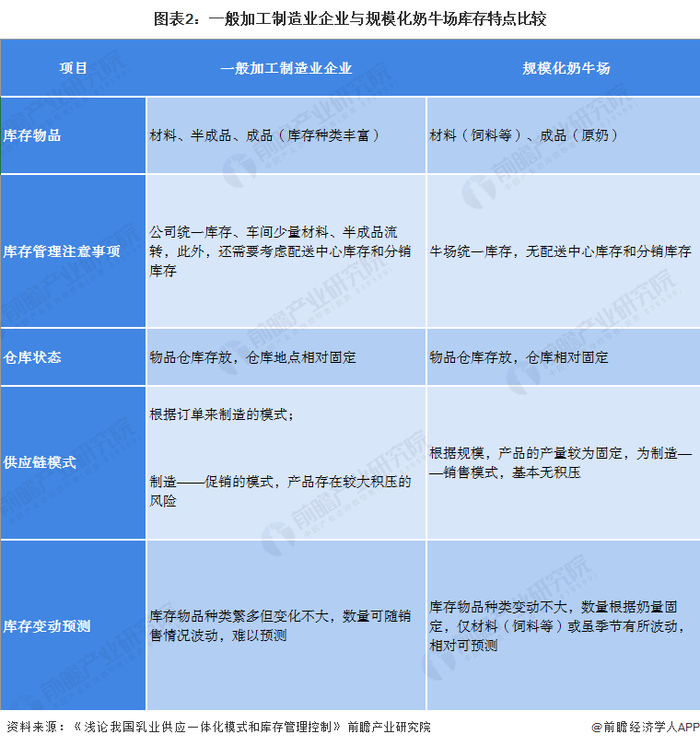一般加工制造业企业和规模化奶牛场因库存产品的不同而致使其库存管理注意事项、仓库状态、供应链模式和库存变动预测都有所不同。所以具有规模化牛奶场的乳企的库存管理模式也相对有些微不同。