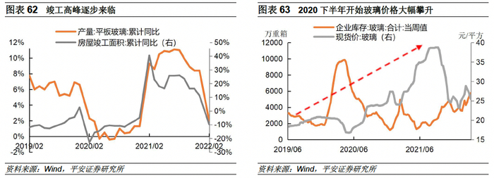 2019H2 至2021H1,地产竣工高峰逐步来临,需求旺盛下2021H1 玻璃价格持续创新高。