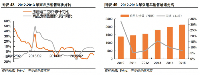 需求方面有所改善:受益货币政策宽松、房贷利率下行、部分城市变相放松“限购”或减免契税,2012 年下半年商品房单月销售面积增速转正,楼市热度逐步回升,2012 年商品房销售面积、销售额分别同比增长1.8%、10.0%,2013 年进一步升至17.3%、26.3%。此外2012-2013 年乘用车销售增速走高,带动玻璃下游需求逐步改善。