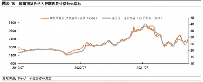 玻璃期货价格与现货价格高度相关,且领先现货价格大约两周,亦可以作为玻璃价格走势观察指标。