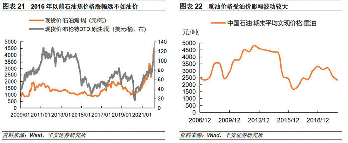 另一方面,受燃料价格上升影响,本轮周期玻璃价格起点更高。受供给不足、经济修复、冷冬预期等影响,2021 年下半年以来天然气价格持续上涨,年初以来原油价格受地缘政治等影响亦大幅攀升,带动石油焦价格上涨,导致浮法玻璃利润水平明显回落。因此,尽管2021H2 需求迅速转弱,但玻璃厂家涨价意愿较高,价格仍保持较高水平。截至2022/3/20,全国4.8/5mm