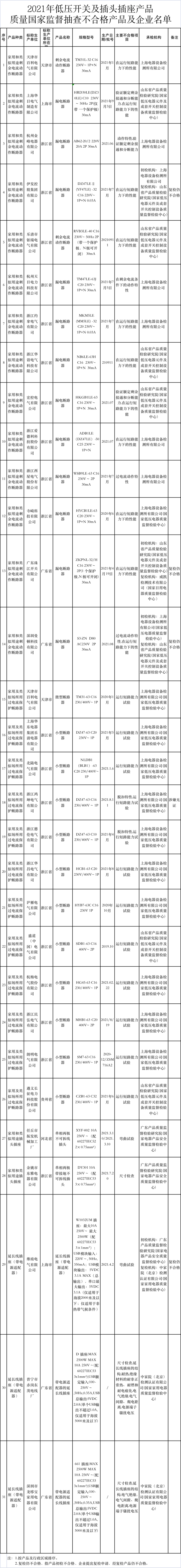 在此次抽查中,抽查了421家企业生产的426批次产品,涉及家用和类似用途剩余电流动作断路器、家用及类似场所用过电流保护断路器、家用和类似用途插头插座、延长线插座(带电源适配器)等4种低压开关及插头插座产品。