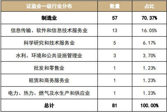 根据证监会一级行业分类,1550家受理企业中,66.3%来自制造业,具体来看,其中有307家来自电子设备制造业,占比20%;206家来自专用设备制造业,占比13%;软件信息服务与医药制造分别以171及124家占比约11%及8%。